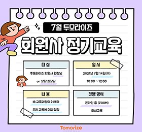 회사명 : (주)투모라이즈 대표이사 : 임정빈 사업자 등록번호 : 667-88-01168 서울시 마포구 독막로 331, 2302호(도화동,마스터즈타워빌딩) 교육사업부 Tel.02-711-5241 Fax.02-701-5241 특허 제 10-1238831 맞춤형 진로설계 및 로드맵 제공시스템 Copyright © Tomorize All rights reserved.